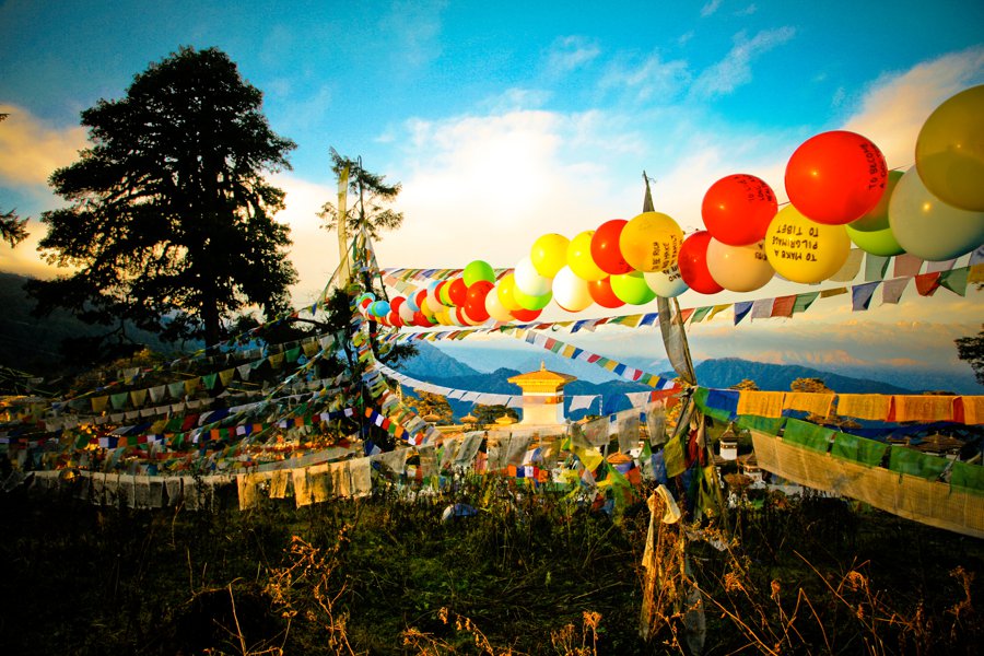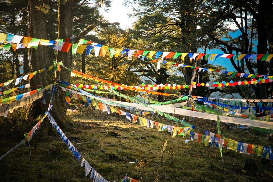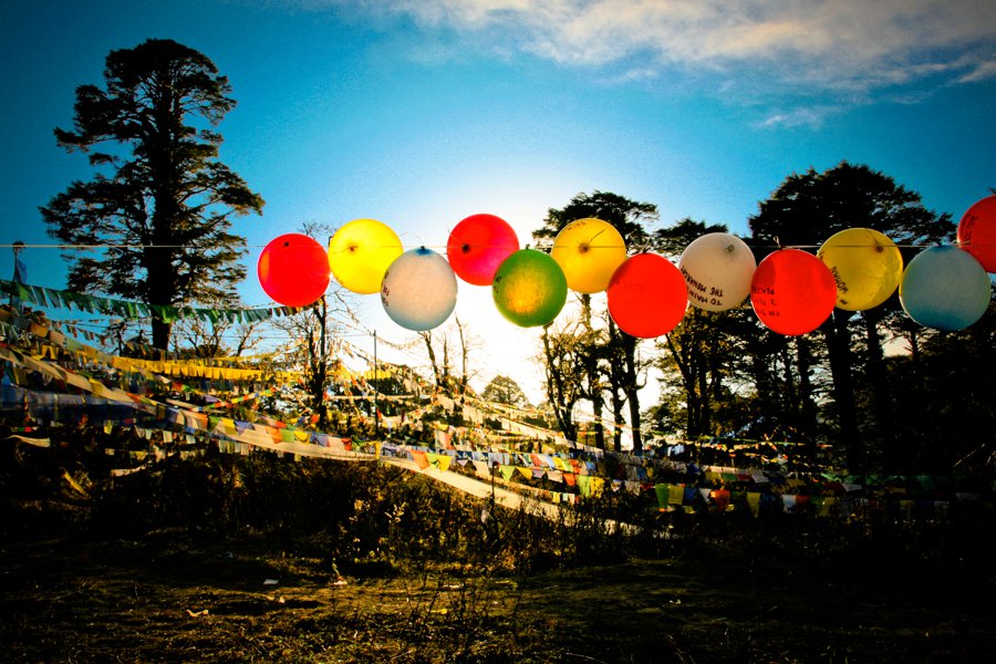 On the final night, all 117 wish balloons were re-inflated and strung up at Dochula, a sacred mountain pass at 10,000 feet, leaving them to bob up and down in the wind, mingling with thousands of strands of prayer flags.