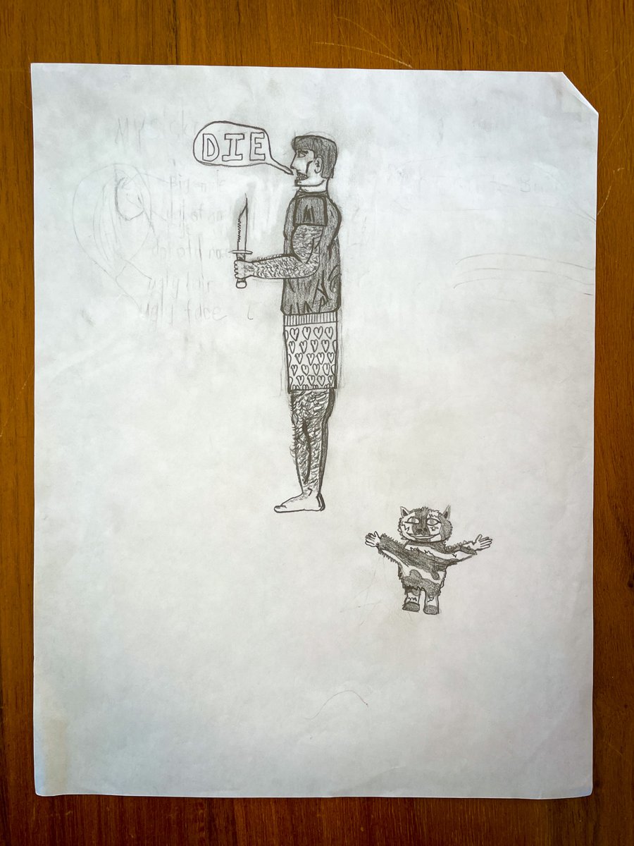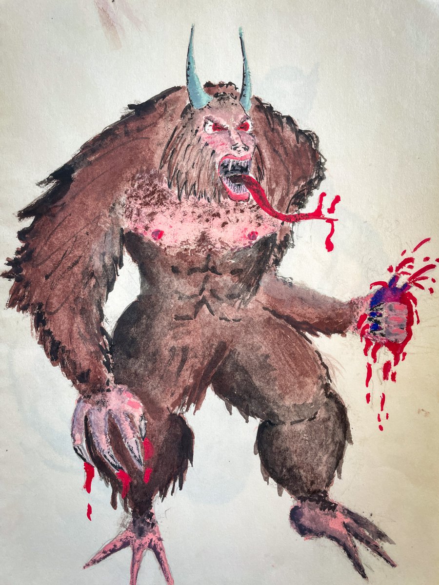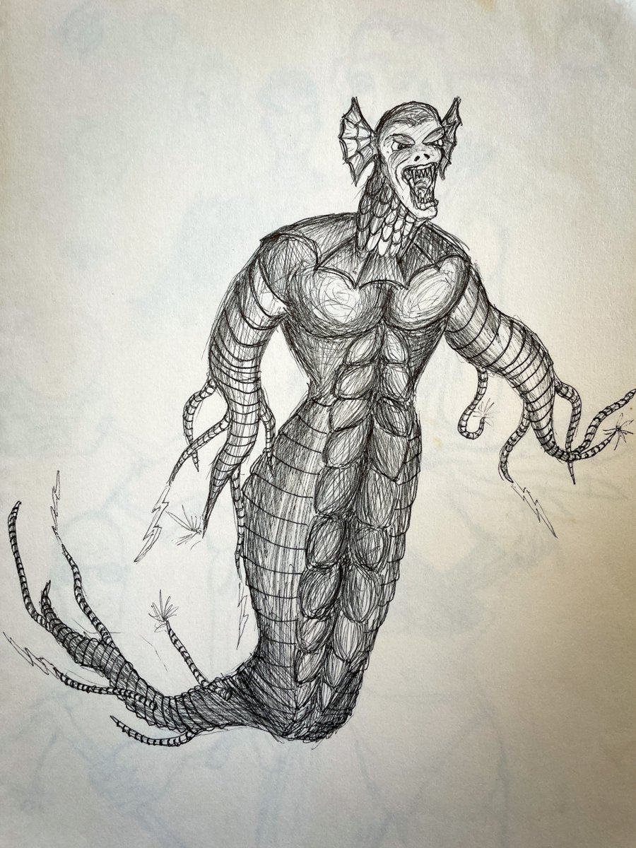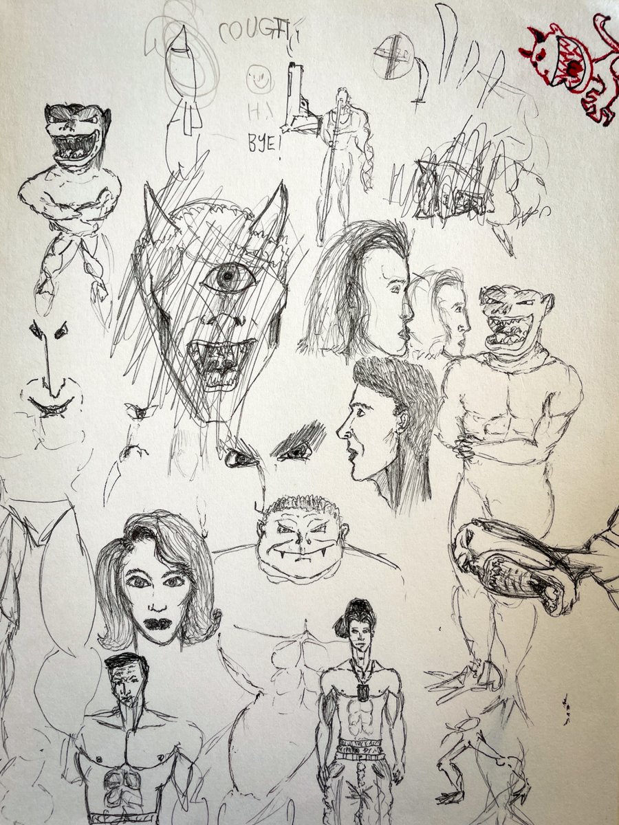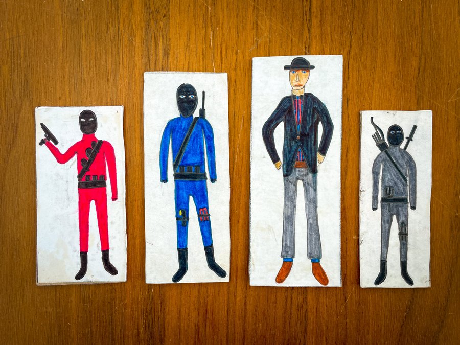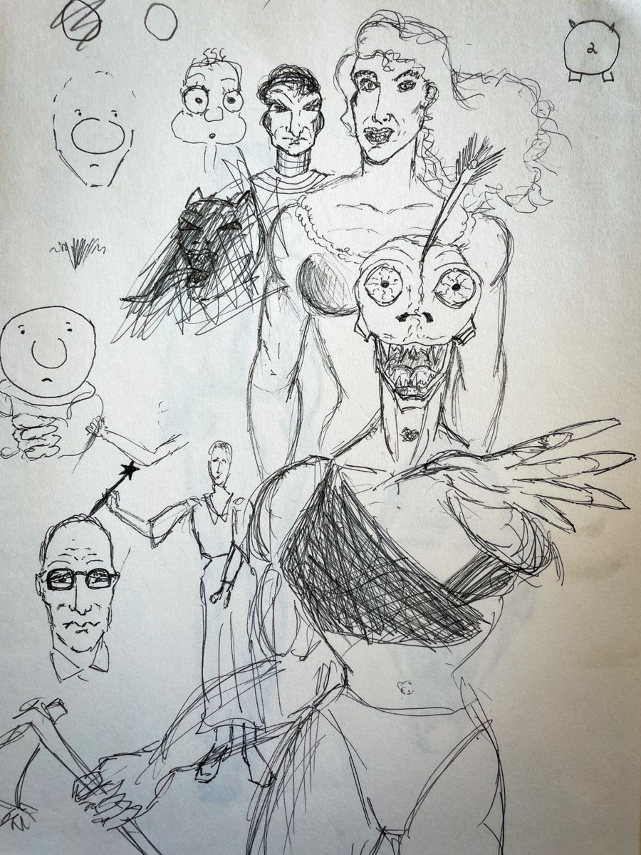 A collection of drawings depicting imaginary fantasy figures, created throughout childhood