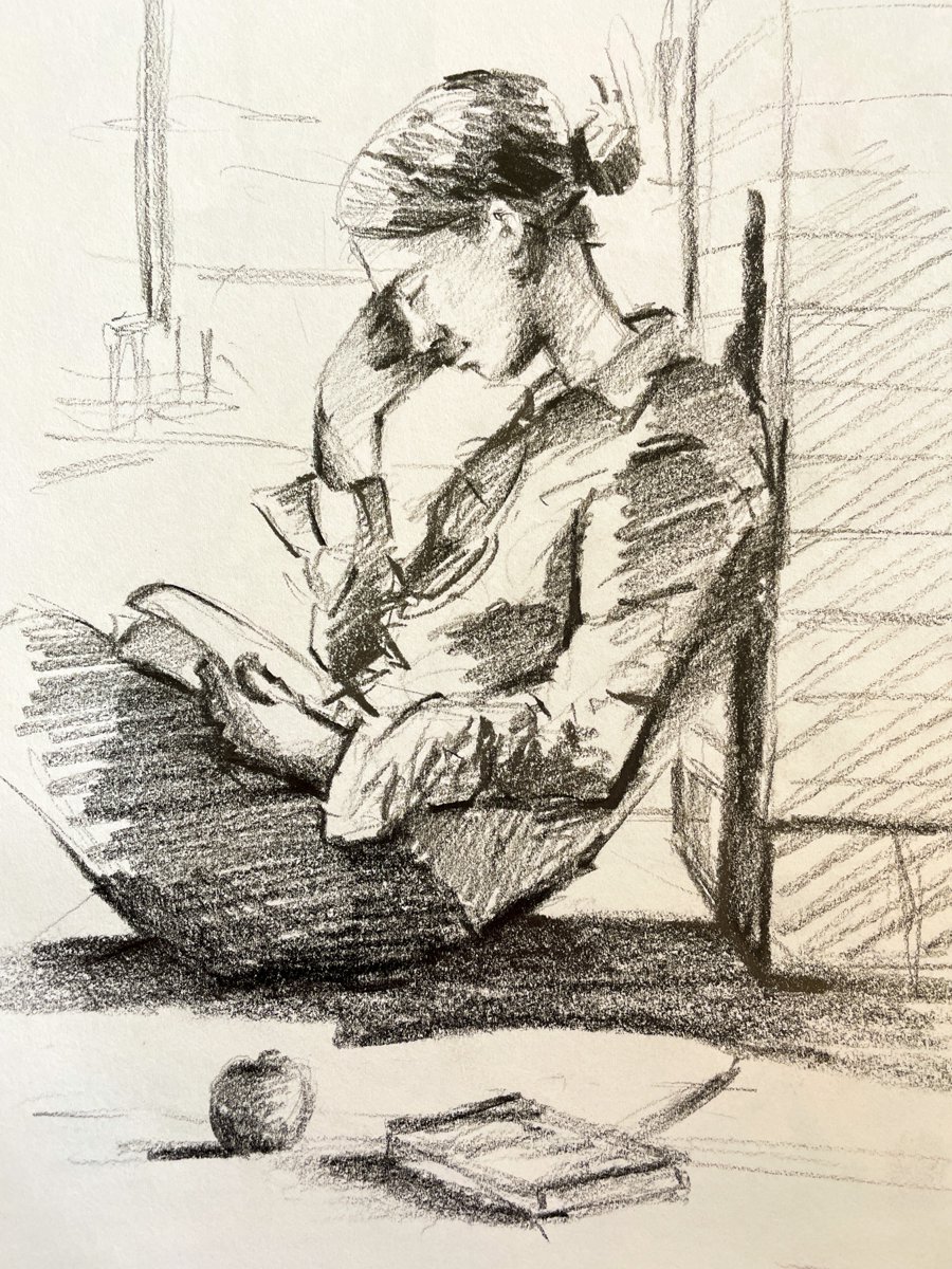 At Deerfield Academy, I was grateful to study with two excellent art teachers — David Dickinson and Tim Engelland. Tim in particular helped to point me away from the comic art of my childhood, towards close observation of life — through still life studies, environmental sketches, and drawings of family and friends.