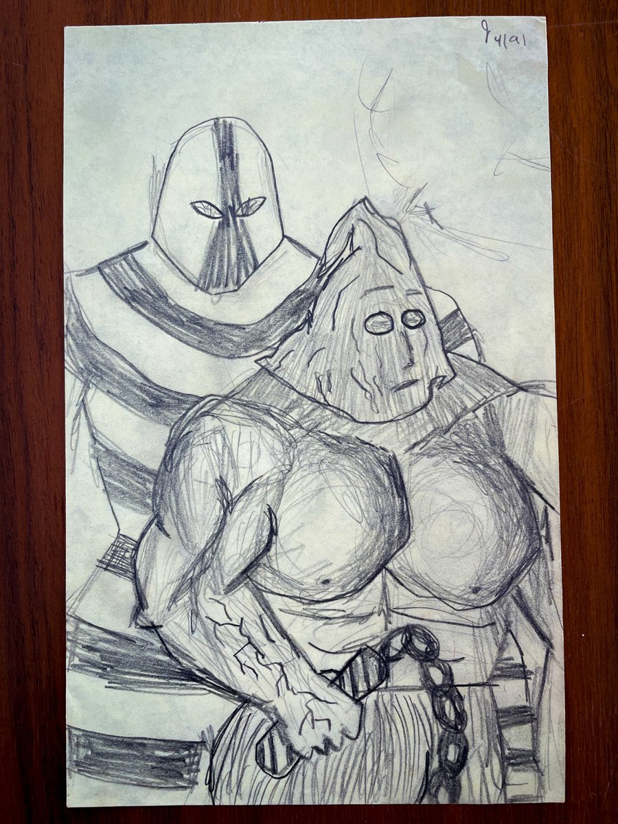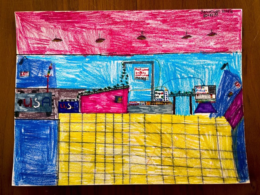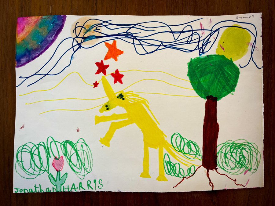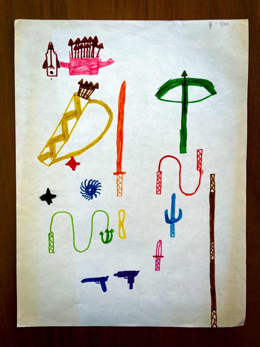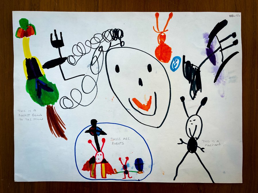 Collected below are various paintings and drawings made over the course of my childhood, roughly arranged in reverse-chronological order — with the most recent ones (~1993) first and the earliest ones (~1983) towards the bottom.