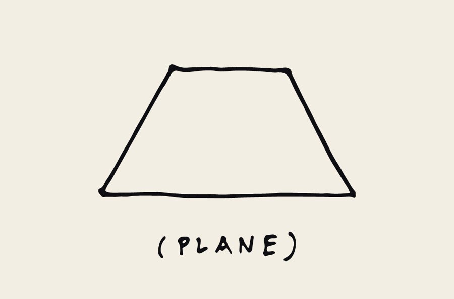Thus we arrive at the geometric concept of a “plane” — a flat surface that is infinitely large, but which has zero thickness (i.e. also without any apparent reality). In this sense, a plane can be understood as encompassing either nothing or everything, or neither, or both.