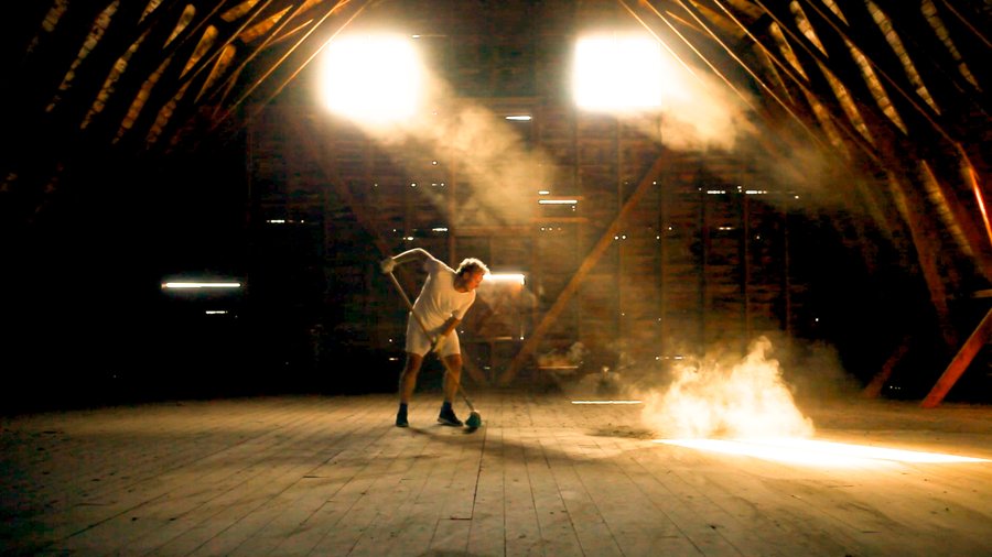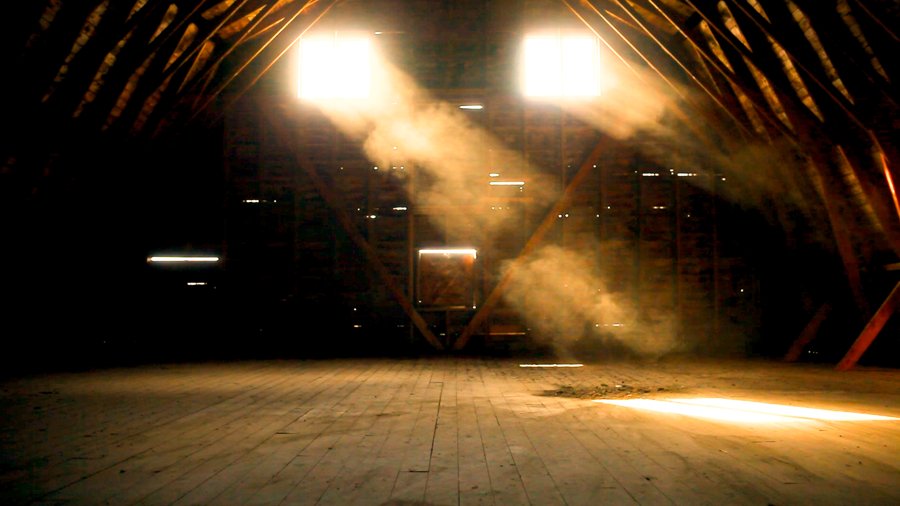 In the hayloft of the High Acres Farm barn, sixty years of dust are swept into a single shaft of sunlight with an old wooden broom.