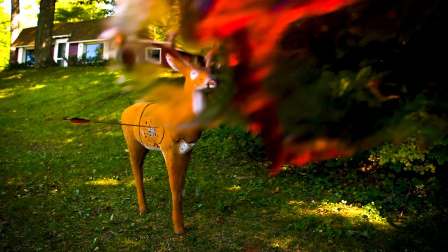 The peaceful lake is interrupted on a quiet summer evening by a sudden splash of water. A deer is shot with an arrow, and the kill creates a sudden splash of red.