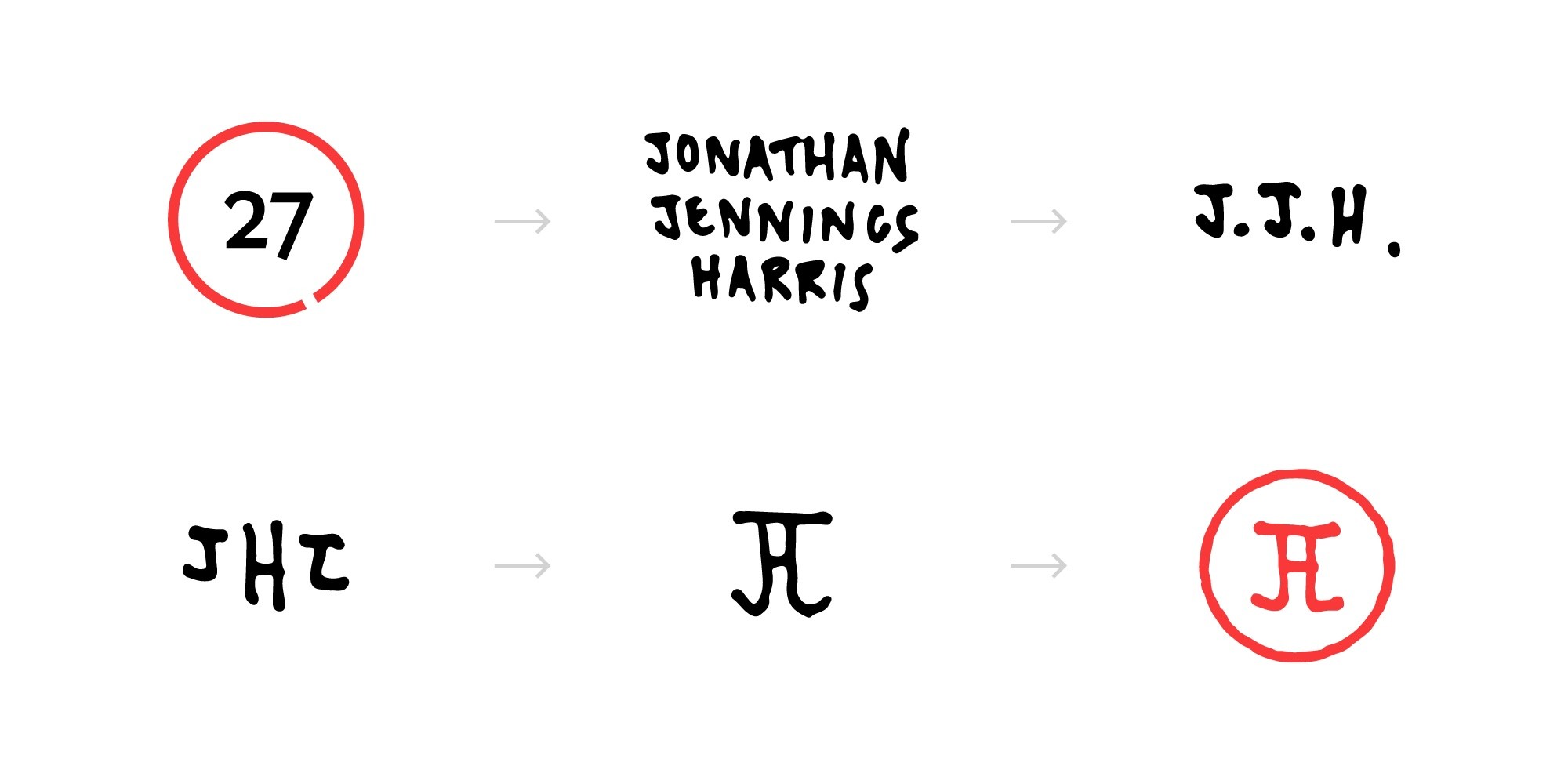 Reflecting on these various considerations, I designed a simple ‘JJH’ monogram for my original birth name of Jonathan Jennings Harris: