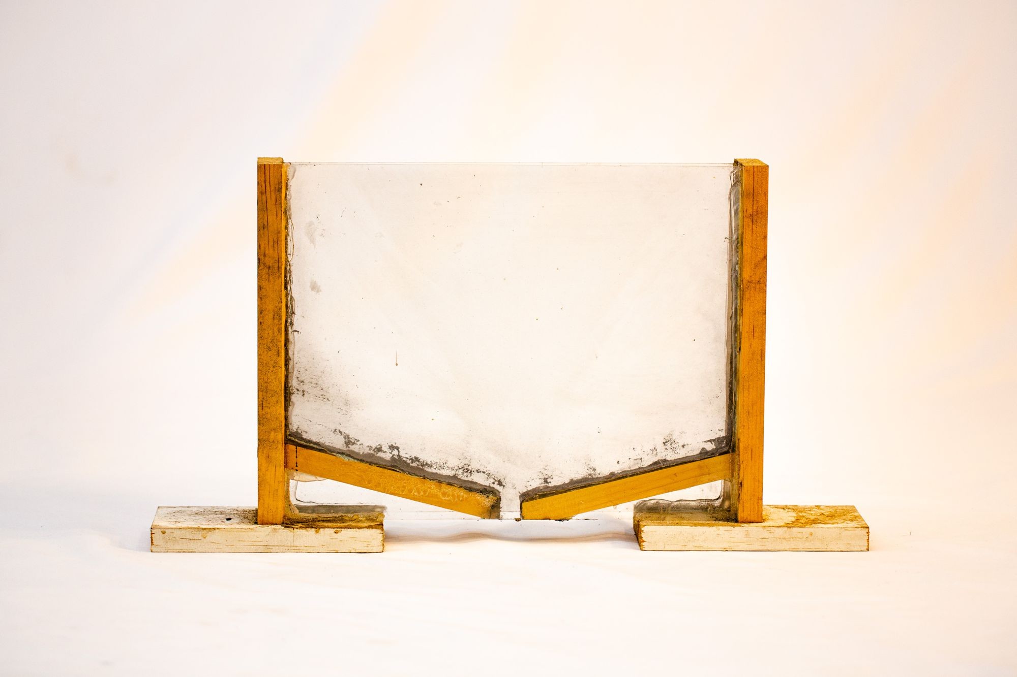 To inspect the “linestone” powder produced in Not a Single Point, I build a simple viewing apparatus using wood and glass.