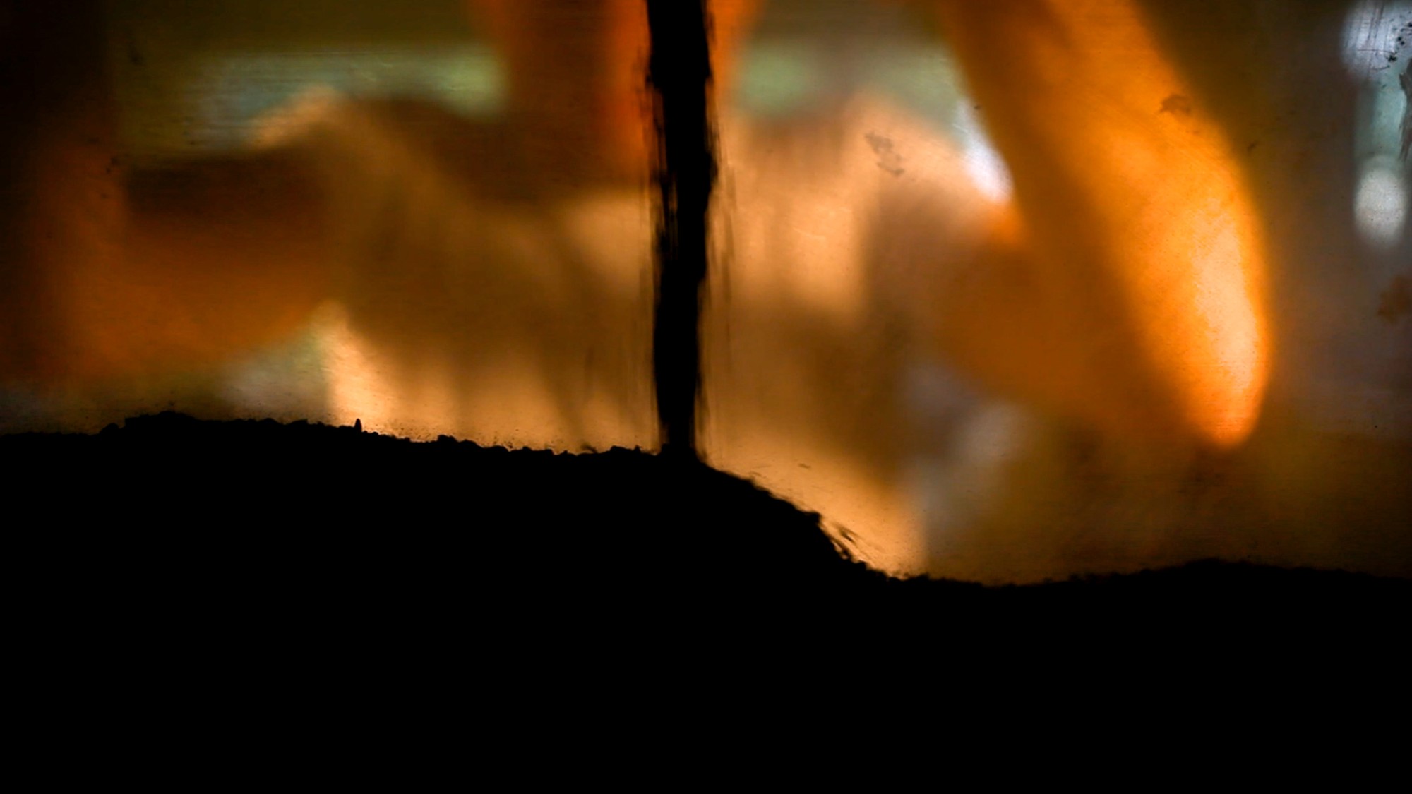 I use an old plastic funnel to pour the powder into the glass, and I watch as it accumulates — until the image of me disappears behind the dark powdery pile.