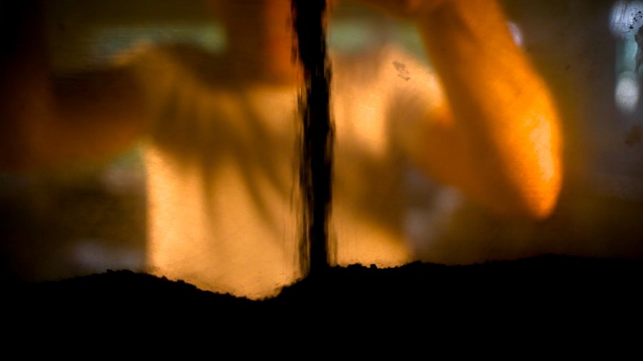 The powdery particles eventually find their “angle of repose,” leaving an empty negative space resembling the space between Jesus Christ and John the Baptist in Leonardo Da Vinci’s famous 1490s painting of The Last Supper — an empty space that’s said to represent the Holy Grail.