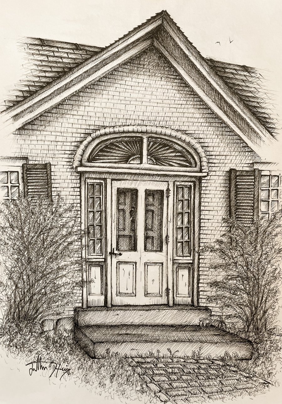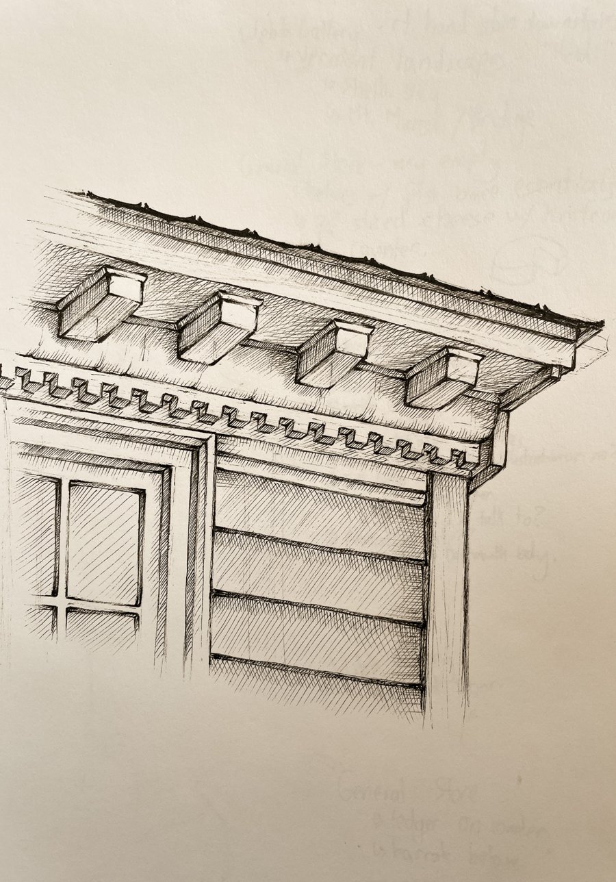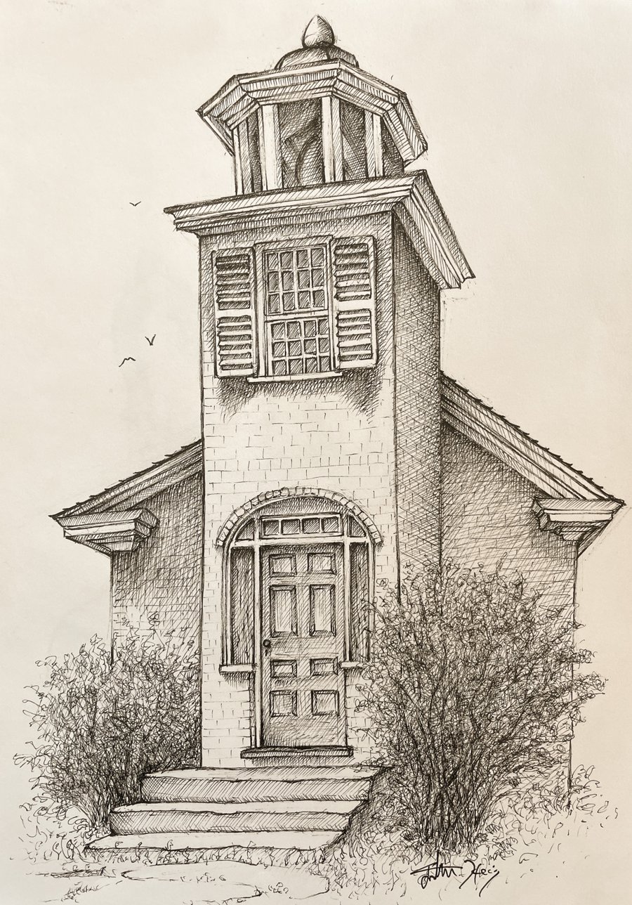 A set of pen-and-ink drawings of a local museum commissioned for their catalogs