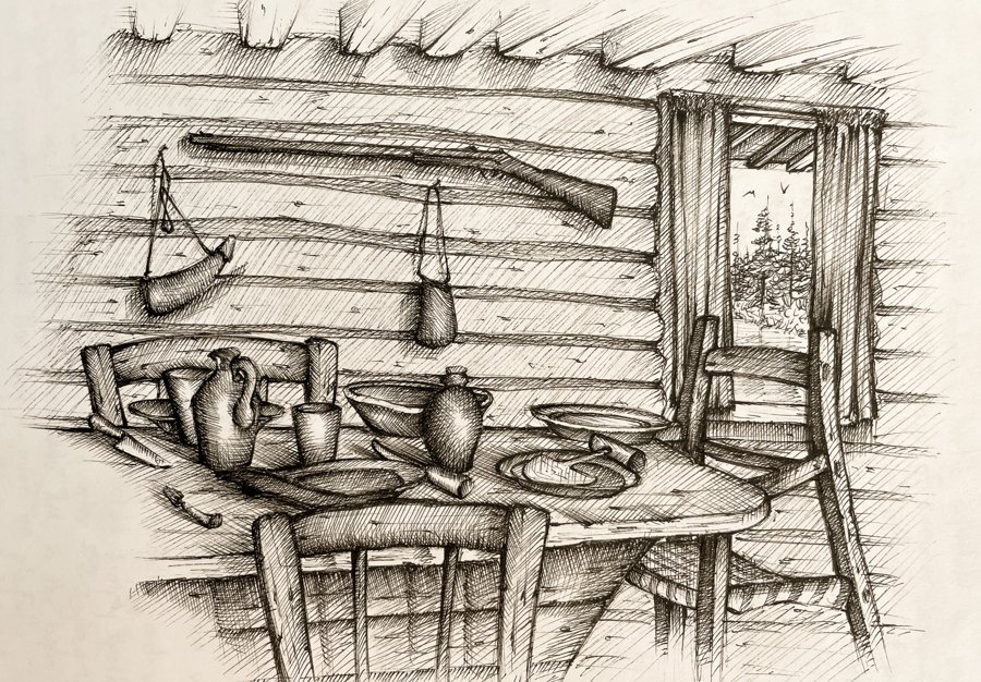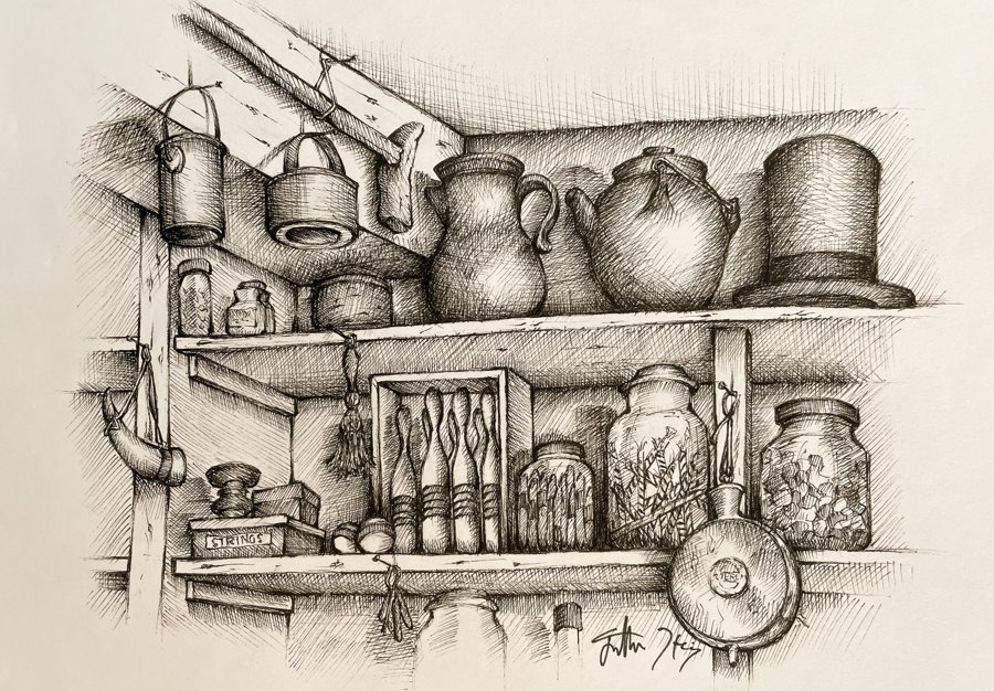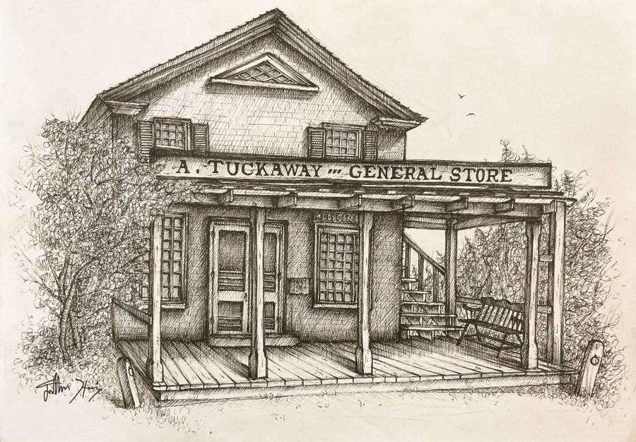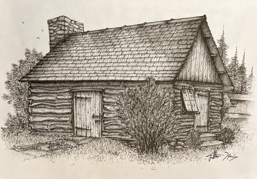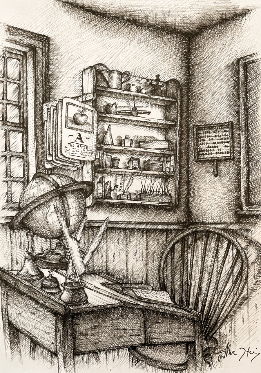 A set of pen-and-ink drawings of a local museum commissioned for their catalogs