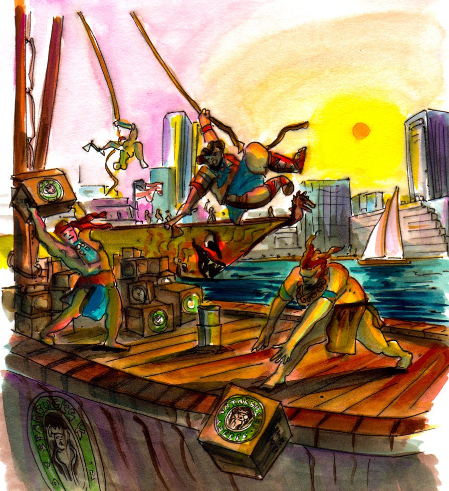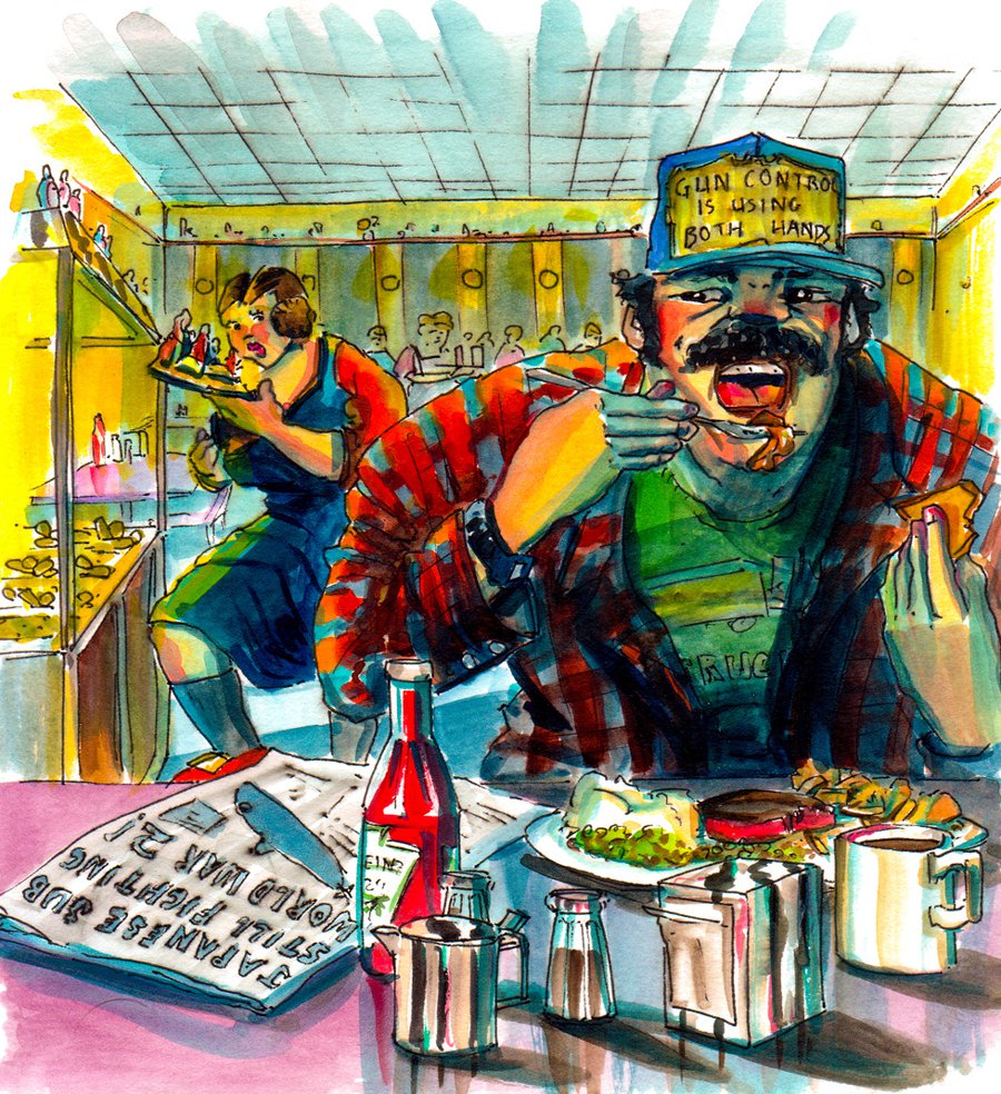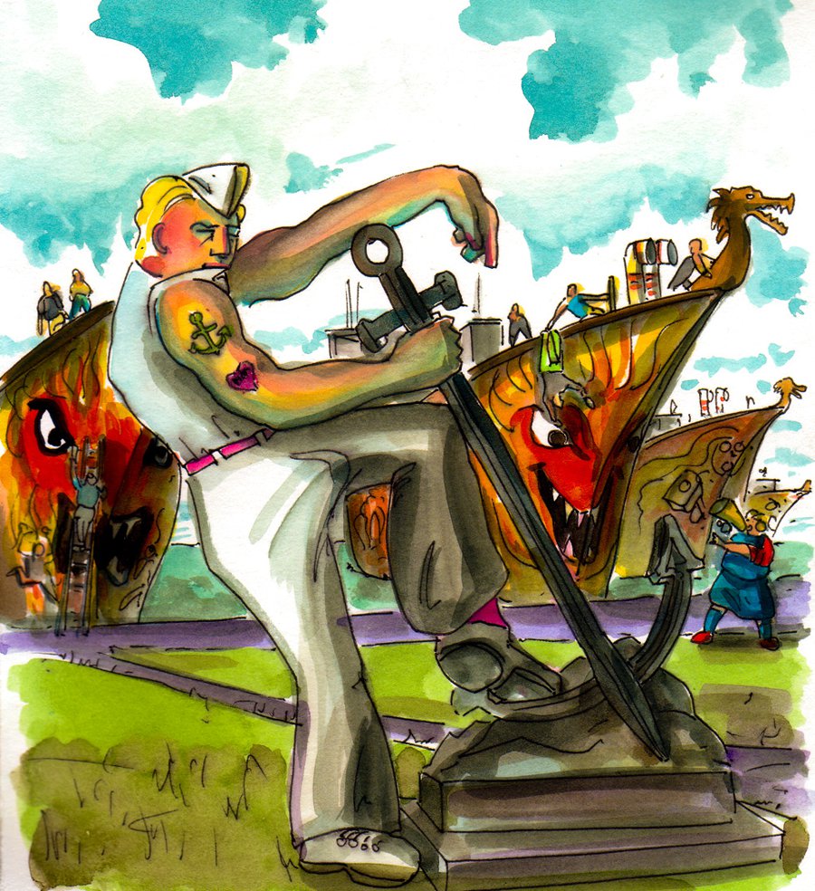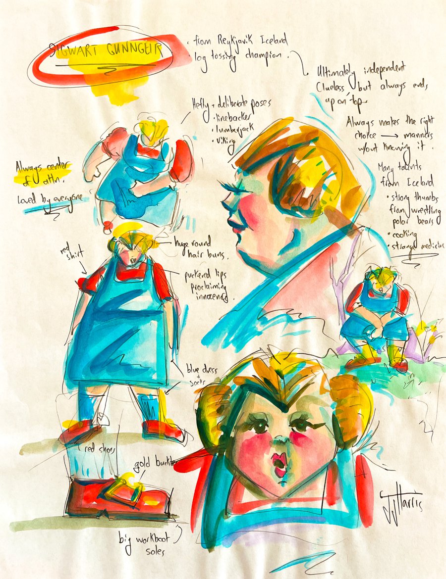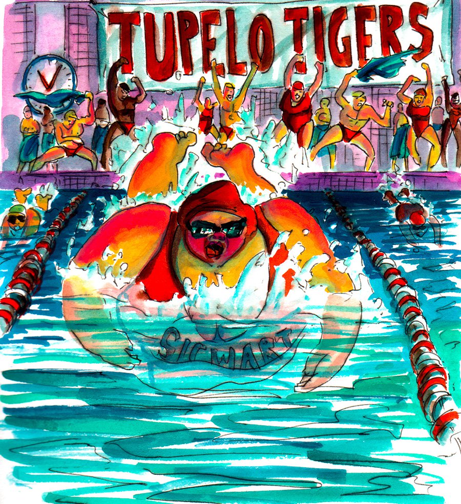 Sigwart is an illustrated story about an imaginary Icelandic log-tossing champion named Sigwart Gunngeir — who, through a string of increasingly unlikely coincidences, ends up traveling through all fifty American states in alphabetical order.