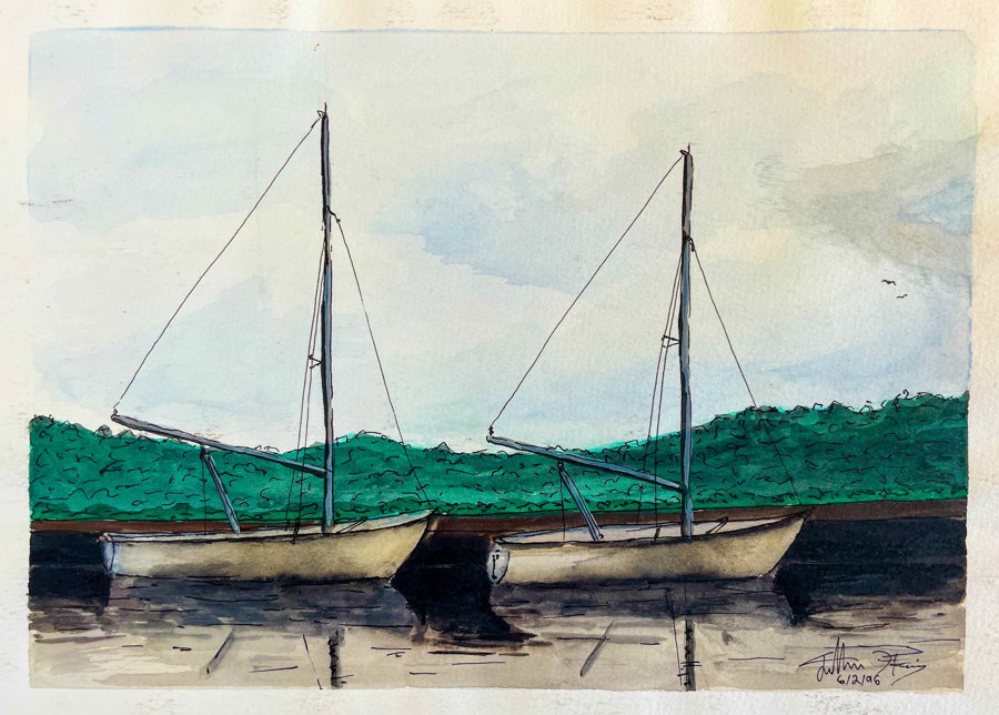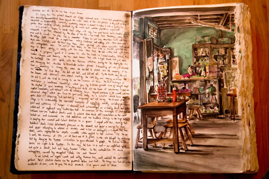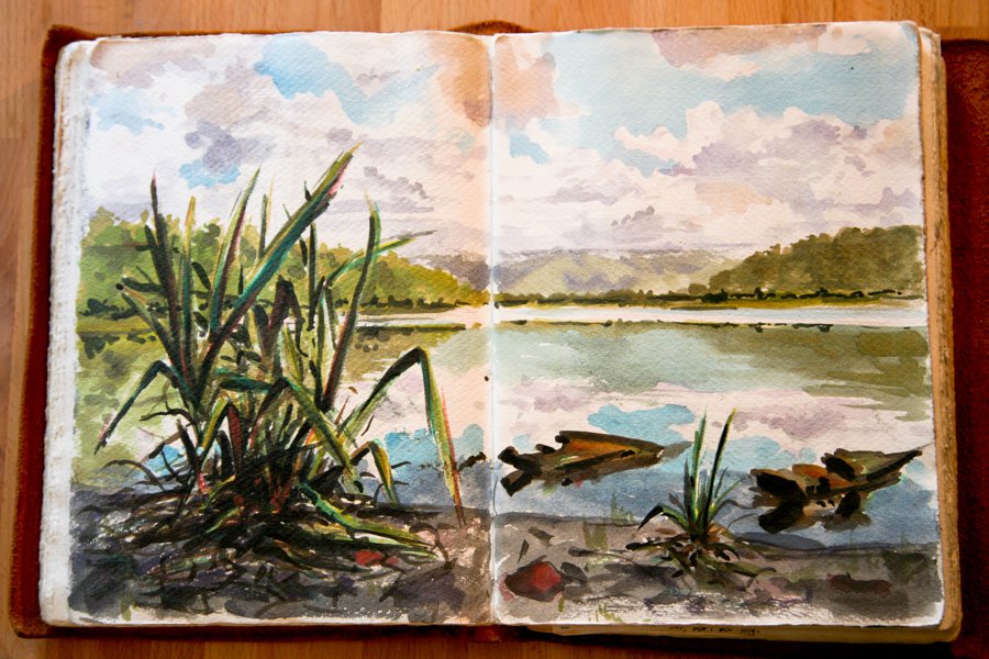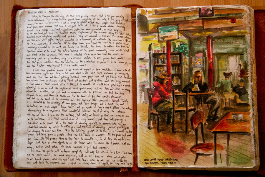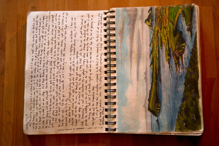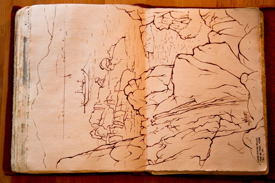 I kept these books for a number of years, but stopped abruptly when I was robbed at gunpoint in Central America in 2003. The robbers stole a bag containing a sketchbook with over nine months of work, and it was at that point that I stopped painting and turned instead to code.