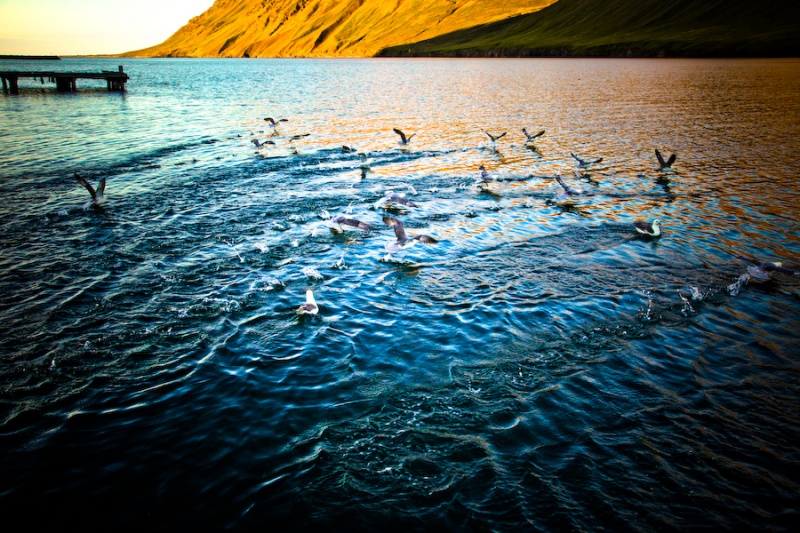 Bergthor and the ocean in the plastic of the beacon in the tower through the doorway of the lighthouse with the art show.
