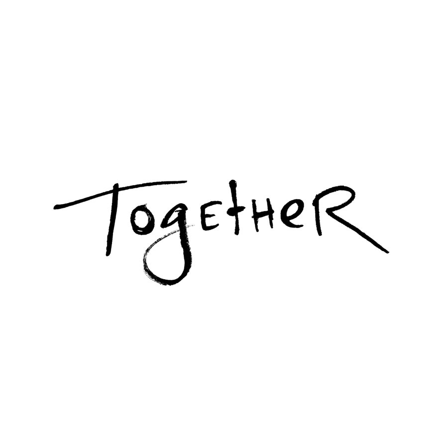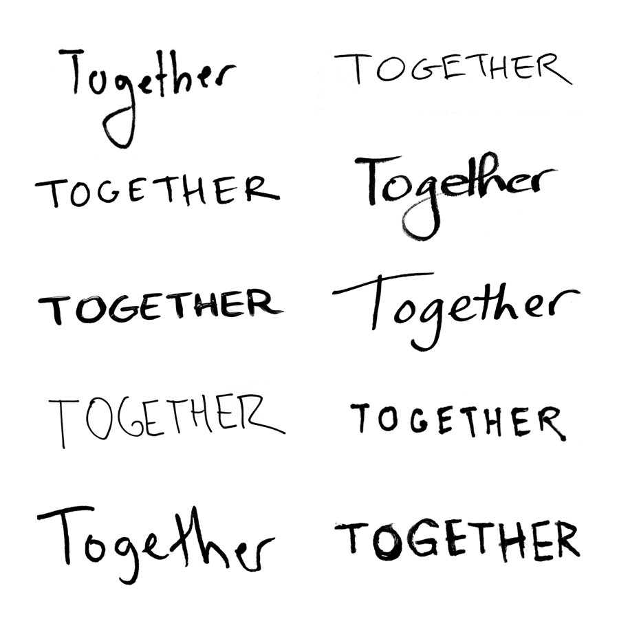 I helped Ari choose a name for his series, which he was planning to call Grounded, before deciding that Together would set a better tone. I designed a symbol incorporating the individual handwriting of his various guests — combining their unique characters to form the word “Together.”