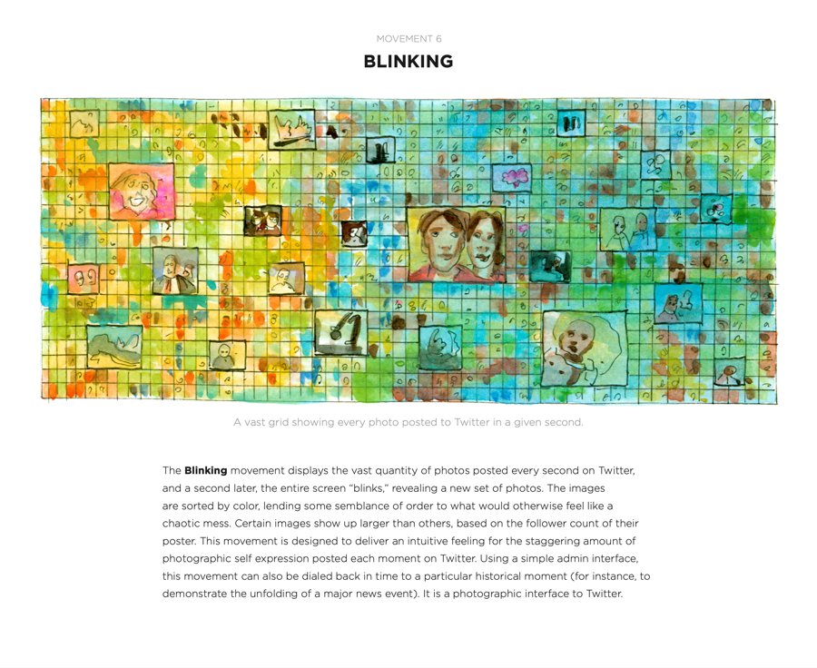 - Blinking — thousands of photos posted each moment create a visual mosaic, which is completely refreshed from second to second.