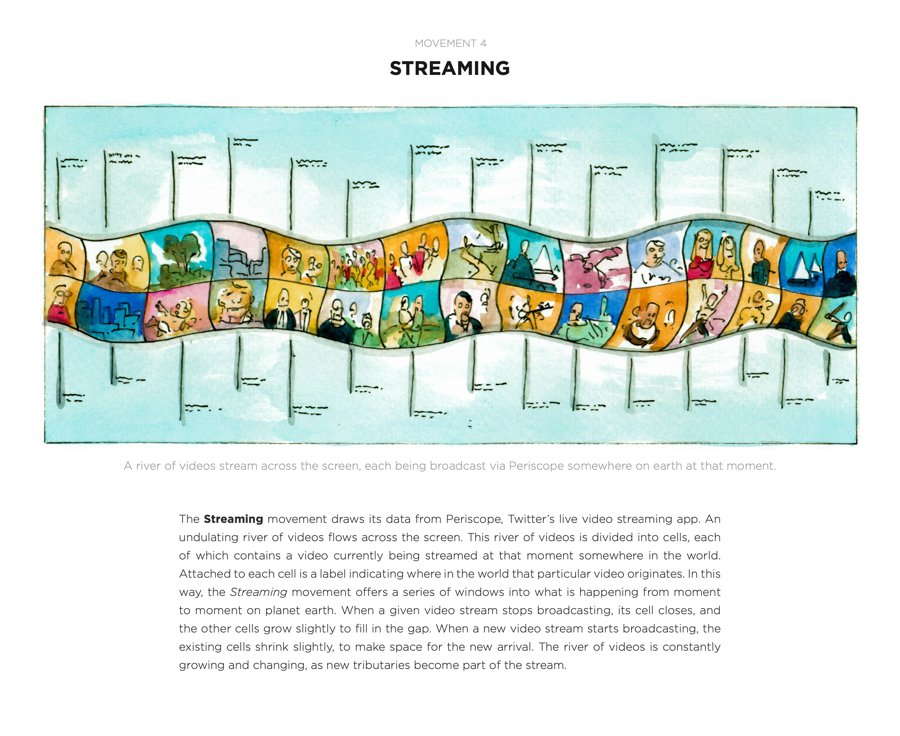 - Streaming — a flowing river of live videos slides across the screen, offering brief windows into life on Earth at that moment.
